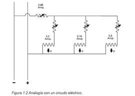 Si establecemos una analogía entre una instalación hidráulica y una instalación eléctrica, las válvulas de equilibrado son comparables a resistencias variables, la resistencia de las tuberías a la resistencia del conductor eléctrico y los emisores de calor / frío a las cargas eléctricas. (fig. 1.2).